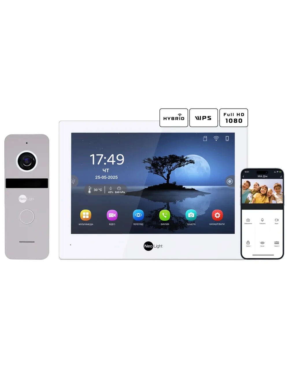 Neolight ALPHA Hybrid + SOLO FHD Silver Комплект відеодомофону
