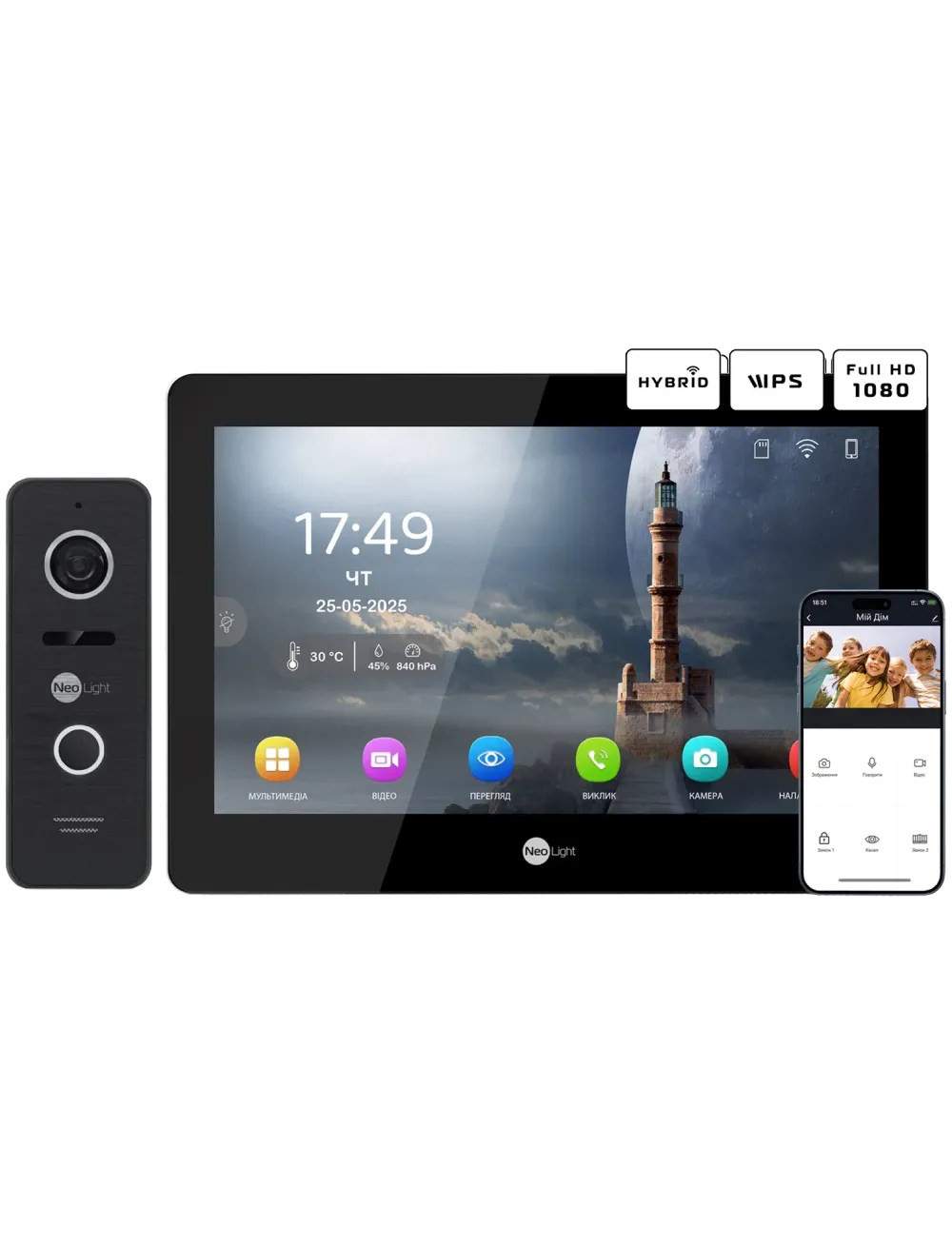 Neolight MEZZO Hybrid Black + PRIME FHD Black с уголком Комплект відеодомофону