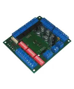 Мережевий контролер контролю доступом на 4 двері. Входи: 9 (4x - датчика двері, 4х - кнопки входу, 1х - тривога), виходи: 5 релейних виходів (4х - закриття дверей, 1х - тривога). Функції: Тривога перевищення часу зачинення дверей, охоронна сигналізація, примушена сигналізація, тривога саботажу....