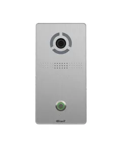 Кольорова накладна відеопанель для багатоквартирного будинку/житлового комплексу сірого кольору з камерою з роздільною здатністю 2 Мп. Кут огляду камери: 110° (горизонтальний), 58° (вертикальний). Матеріал корпусу: алюміній. Тип встановлення: накладний. Клас захисту: IP65