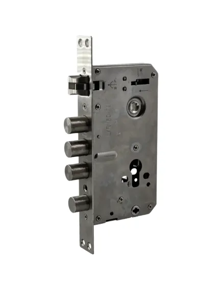Врізний замок для дверей із посадковим розміром 60х68 мм. Автоматичне замикання — на косий ригель. Врізний корпус із функцією автоматичного закриття для розумних замків PES. Можна встановлювати як на вхідні, так і міжкімнатні двері.