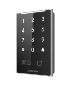 Mifare кардрідер з кодовою клавіатурою. Процесор 32bit, підтримка карт Mifare (13.56Mhz), протокол підключення: RS-485, wiegand. Функції: тривога. DC 12В, <2Вт, 123х88х21 мм