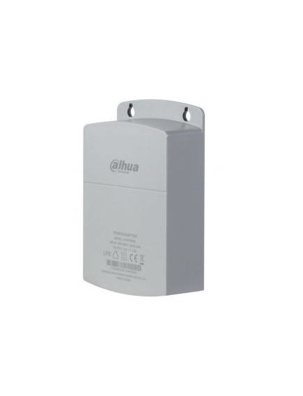 Адаптер живлення PFM300 Dahua водонепроникний, Вхід: AC 180 - 264 В, 50 / 60Гц, 0,6А; Вихід: DC12 В (± 5%), 2A (± 5%). Захист від перенапруги, захист від перевантаження по струму. 88 х 37 х 138 мм, 160 г