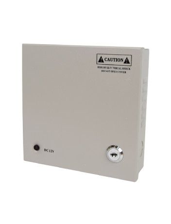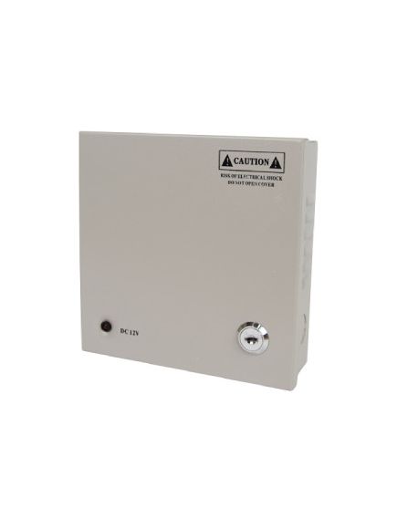 Блок живлення імпульсний, вихід: + 11-14 В / 5 А, клеммник; вхід: ~ 175 ... 240 В, клеммник; металевий корпус з кришкою і замком. 4 канали навантаження, окремі фільтри, окремі запобіжники по 1.25 А на кожен канал. Розміри 163 х 163 х 48 мм.