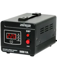 ● Тип: однофазний, релейний; ● Вихідна потужність: 1000 ВА (600 Вт); ● Розетки: 1 євро-розетка; ● Повний захист: від підвищення і зниження напруги, перегріву, короткого замикання і перевантаження; ● Вхід: 140-260 В; ● Вихід: 230 В ± 10 %, синусоїдальна форма
