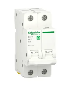 ● Опис полюсів   2P; ● Кількість захищених полюсів   2; ● [In] номінальний струм   25 А; ● Тип мережі змінний струм; ● Технологія розчеплювача   тепломагнітний; ● Крива відключення  C