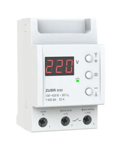Струм, А: 32; Спосіб монтажу: На DIN-рейку; Кількість фаз: 1 ф. (230 Вольт). Реле напруги ZUBR D25-63 призначені для захисту обладнання від надмірних коливань напруги в мережі. При настанні аварійної ситуації реле вимикає навантаження. Застосовується в однофазних мережах змінного струму (230 В)....