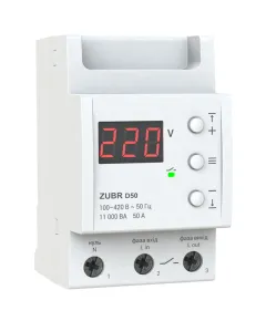 Струм, А: 50; Спосіб монтажу: На DIN-рейку; Кількість фаз: 1 ф. (230 Вольт). Реле напруги ZUBR D2 захищає від критичних стрибків високої та низької напруги, а також від обриву нуля. У випадку аварійної ситуації реле напруги відключає навантаження, а при нормалізації включає назад. Широкий...