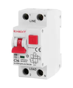 ● Перетин приєднувального дроту, мм² 1-25; ● Кількість полюсів 1p+N; ● Номінальний струм In, А 16; ● Частотна характеристика С; ● Вимикаючий диференціальний струм, ма 30