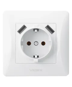 ● Матеріал рамки: Пластик; ● Колір: Білий; ● Тип монтажу: Вбудований; ● Напруга: 250 В; ● Ступінь захисту: IP20; ● Сила струму: 16А; ● USB 2.1A, 5.1VDC; ● 86мм х 86мм