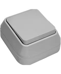 Вимикач зовнішній, одноклавішний, квадратний, без підсвічування, без заземлення, IP44, 250 В, 10 А, ABS-пластик, колір сірий