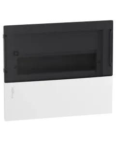 Resi9 MP є щитом для встановлення модульного обладння, внутрішнього монтажу. Цей пластиковий щит має розмір 1 ряд, 12 модулів по 18 мм. В нього може бути встановлено всі типи модульного обладнання, що монтується на DIN-рейку. Ступінь захисту IP40. В комплект поставки входять димчасті двері....