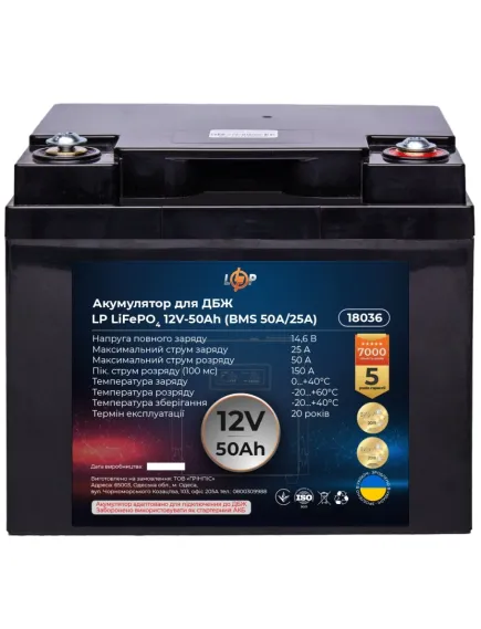 LP LiFePO4 12 V - 50 Ah (BMS 50A/25А) Акумулятор