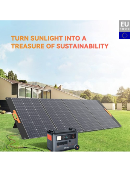 Збільште свою енергію за допомогою OSCAL PM400, сонячної панелі потужністю 400 Вт, яка містить високоякісні монокристалічні кремнієві елементи з ефективністю перетворення 22,7%. Тримайте свої пристрої зарядженими та живими, куди б вас не занесли ваші пригоди.