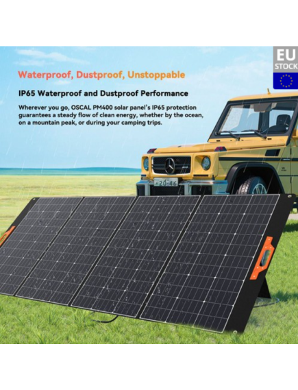 Куди б ви не пішли, захист IP65 сонячної панелі OSCAL PM400 гарантує постійний потік чистої енергії, будь то біля океану, на гірській вершині або під час ваших походів.