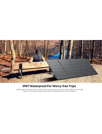 Завдяки міцному покриттю EFTE на поверхні він довговічніший і стійкіший до подряпин. Панель також виготовлена відповідно до стандарту водонепроникності IP67, що робить її ідеальною для активного відпочинку на природі, наприклад для кемпінгу, скелелазіння, походів і навіть за поганих погодних умов.