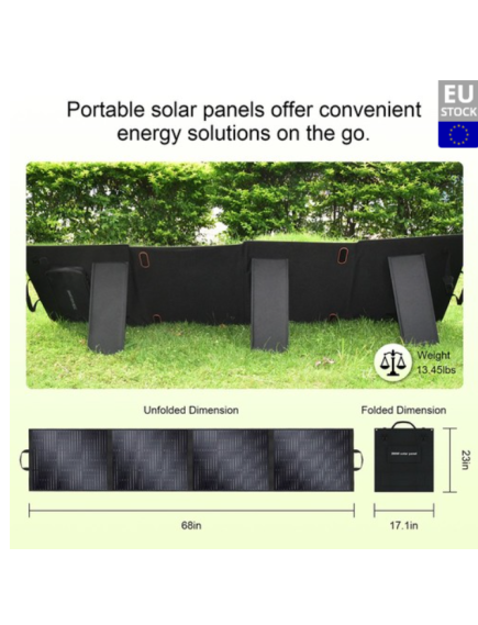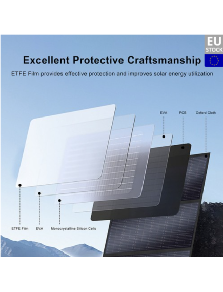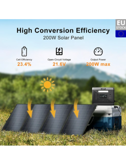 Завдяки напрузі відкритого ланцюга 21,6 В і ККД 23,4%, ця сонячна панель може забезпечити максимальну вихідну потужність 200 Вт. Водонепроникний і пилонепроникний дизайн IP65 забезпечує міцність і довговічність за різних погодних умов. Крім того, плівка ETFE забезпечує ефективний захист і покращує використання сонячної енергії, що робить SolarPlay T200 надійним і ефективним вибором для ваших потреб у відновлюваній енергії.