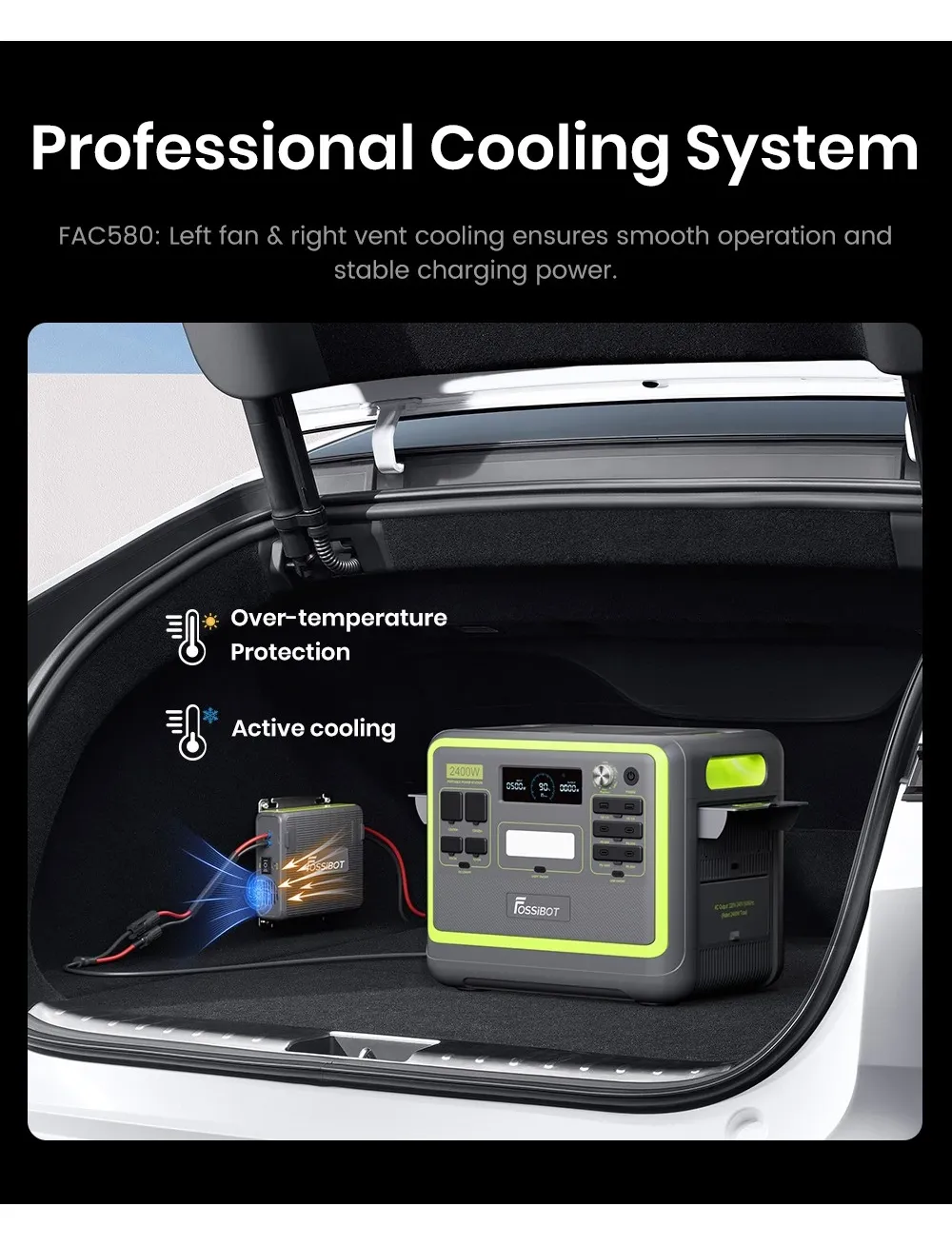 Генератор-зарядний пристрій FOSSiBOT FAC580 потужністю 580 Вт для електростанції FOSSiBOT, чорний