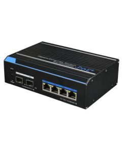 4-портовий комутатор. Downlink порти: 4x RJ45 (1000M); Uplink порти: 2x RJ45 (1000M), 1x SFP (1000M), 1x SFP (1000M) комбо; Грозозахист до 6кВ і ESD захист 8кв; DC 12В-24В, підтримка резервного живлення; -40º до + 75ºC; 163х110х46 мм.