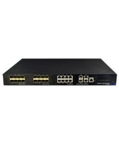 24-портовий Ethernet / Fiber гібридний комутатор. Downlink порти: 16 * 1000Base-X SFP + 8 * 10/100 / 1000Base-T RJ45; Uplink порти: 2 * 10/100 / 1000Base-T Uplink RJ45 + 2 * 1000Base-X Uplink SFP; Грозозахист до 6кВ і ESD захист 8кв; AC 220В, 60 Вт. -10º до + 50ºC; 442х305х44 мм.