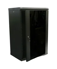 Шафи для телекомунікації висотою 18U можуть використовуватися при побудові досить великих СКС. Оснащений знімними бічними стінками на замках, гартованим склом, кабельними вводами із заглушками на гвинтах та регульованими 19" річками. Максимальна робоча глибина для встановлення обладнання - 380...