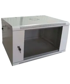 Ширина – 600 мм. Глибина – 450 мм. Висота – 560 мм. Товщина металу деталей корпусу – 1 мм. Двері на замку з тонованим гартованим склом та можливістю встановлення петель у дзеркальне положення. Передня та задня пара рейок регульованих по глибині. Розсувні кабельні вводи...