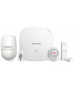 Комплект бездротової сигналізації. Включає в себе 1х Hub (DS-PWA32-HGR), 1x магнітоконтакт (DS-PD1-MC-WWS), 1x датчик (DS-PD2-P10P-W) і 5x IC брелоків (DS-PTS-MF). Hub підтримує підключення по Wi-Fi, Ethernet, GPRS, і сниться з охорони Mifare брелоком. Частота: 868MHz; Підключення до 32...