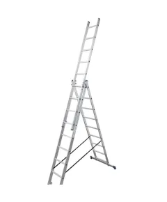 Одна 3-хсекційна драбинка має декілька робочих положень; може розкладатися в: альфа-драбинку (перевернута літера У), двосторонню, приставні сходи з усіма висунутими вгору секціями, одна окрема секція як приставна драбинка + Ʌ-подібна драбинка ; в конструкції передбачено широкий стабілізатор для...