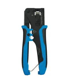 Інноваційний наскрізний ручний інструмент для обтискання конекторів 8P. Призначений для всіх телекомунікаційних та мережевих установників. Є вбудовані кусачки та інструмент для зачистки кабелю. Застосовується для монтажу наскрізних конекторів RJ45.