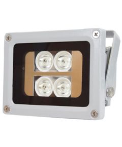 дальність 60 м, кут 45 °, довжина хвилі 850 нм, DC 12В, струм споживання 1А 4 ІК-діода, розміри 114х86х86мм, вага 0,6 кг, вуличне виконання IP65, БП 12В і кронштейн в комплекті. Автоматичне включення ІЧ-підсвічування в нічний час і вимикання в денний