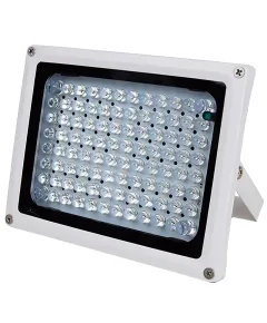 ІЧ-прожектор, дальність 100м, кут 30°, довжина хвилі 850 нм, 220 В / 0.7 А, 96 ІЧ-діодів, розміри 180 х 140 х 80 мм, вуличне виконання IP66. Автоматичне увімкнення ІЧ-підсвічування в нічний час і вимикання в денний. Колір білий, метал, -35° - + 40° С.