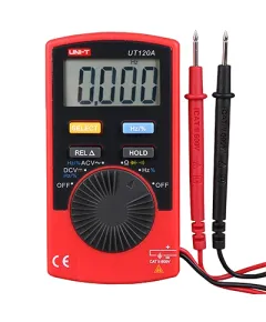 Багатофункціональний кишеньковий цифровий мультиметр. Прилад живиться від 3 В батареї. Мультиметр UNI-T UTM 1120A (UT120A) дозволяє вимірювати постійну і змінну напругу, опір, частоту, а також перевіряти провідність електричних кіл, тестувати діоди. Прилад оснащено функціями автоматичного...
