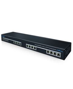 16-канальний приймально-передавач HD відео сигналу і живлення за UTP кабелю CAT5e / Cat6 на відстань до 300 метрів. Підтримує відеостандарти: HDCVI, HDTVI, AHD і аналоговий. Кожен канал має захист від короткого замикання, перевантаження по струму. Живлення: DC 12-24В; Розмір: 430x83x44 мм