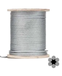 ● Діаметр     8 мм; ● Паковання     100 м; ● Розривне навантаження     3458 кг; ● Матеріал     сталь; ● Покриття     цинк білий; ● Стандарт     DIN 3055; ● Конструкція     6х7 + FC