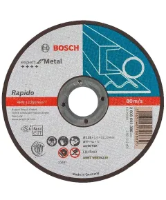 Відрізне коло Bosch Expert for Metal прямої форми діаметром 125 мм, з посадкою 22,23 мм, товщиною 1 мм застосовується на кутових шліфувальних машинах Bosch 125 мм для чистого різання металу без утворення задирок і зміни кольору заготовки. Кільцева швидкість кола 80 м/с.