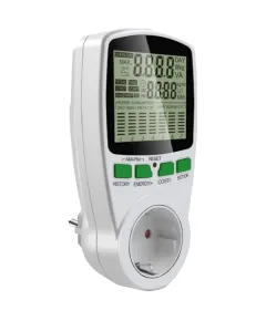 Контрольно-вимірювальний прилад, за допомогою якого можна дізнатися про споживання енергії електроприладами, а також порахувати витрати за спожиту електроенергію. Показує максимальні та мінімальні значення споживаної електроенергії, поточну напругу мережі та робочий струм електроприладу...