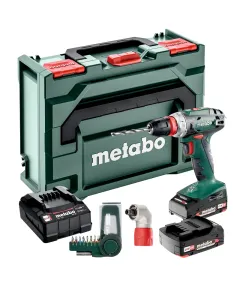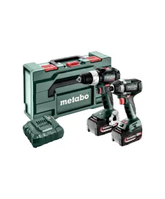Склад комплекту Metabo Combo Set 2.8.4 18V: Акумуляторний шуруповерт Metabo BS 18 LT BL; Акумуляторний ударний гайковерт Metabo SSD 18 LT 200 BL; 2 літій-іонні акумуляторні батареї Li-Power (18 В / 5,2 А-год); Зарядний пристрій ASC 55; Пластиковий кейс MetaBox 145 L