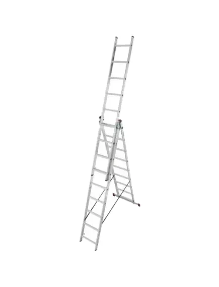 Універсальні 3-секційні сходи можуть використовуватися як звичайні приставні або висувні сходи, або як драбини. Відмінно підійде для побутового використання на дачах, приватних котеджах і для різноманітних робіт на висоті в офісах, магазинах, ресторанах.