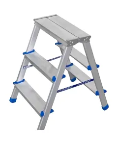 Драбинка має розкладну конструкцію; широкі сходинки забезпечують стійкість під час підйому; на ніжках одягнені протиковзкі наконечники; матеріал опорних наконечників – ПВХ; на сходинках є рифлення проти ковзання взуття; з торців кожної сходинки є пластикові заглушки для безпеки...