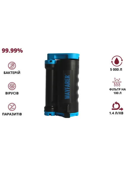 LifeSaver Wayfarer – це мікробіологічний фільтр для води, що використовує технологію ультрафільтрації для фільтрації вірусів, бактерій, цист та паразитів із забруднених джерел води. Технологія LifeSaver відфільтровує бактерії до мінімуму Log 6 (99,9999%), віруси до мінімуму Log 5 (99,999%) та цисти до мінімуму Log 4 (99,99%), як зазначено в Протоколі NSF 231, на основі рекомендацій Агентство з охорони довкілля США (EPA).