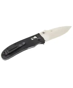 Клинок ножа виготовлений у формі clip-point. Марка металу для леза - 440С; довжина одного тільки леза - 7.7 см; сталь загартована до твердості 58 HRC; матеріал накладок рукоятки - G10; інтегрований замок Axis; важить 81 г
